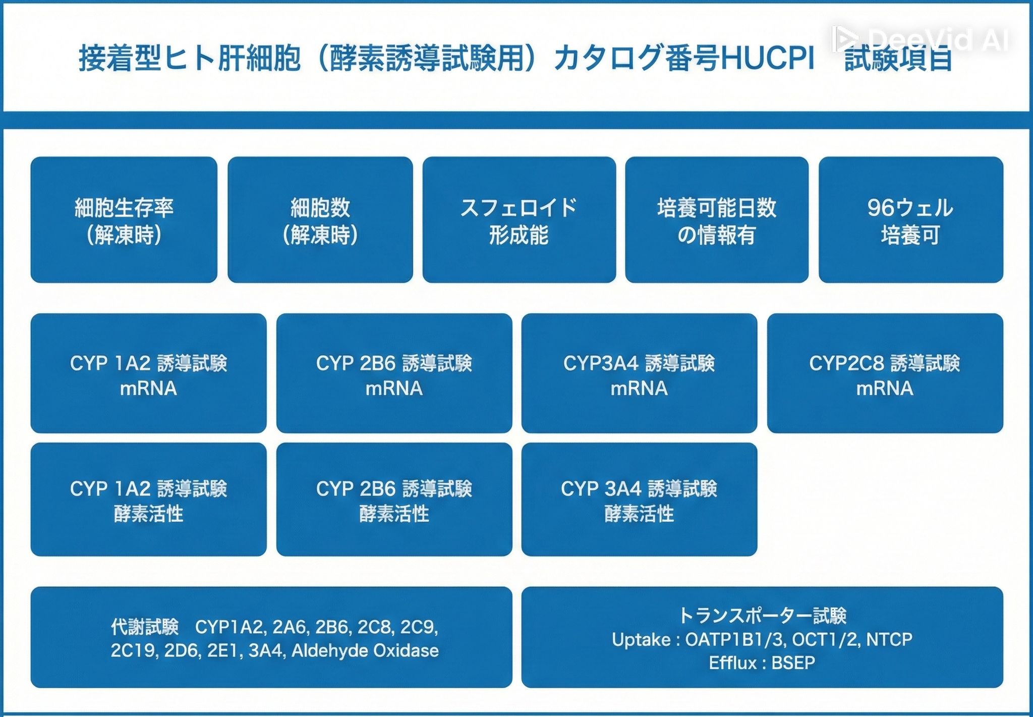 ロンザの凍結ヒト肝臓細胞の全てのロットにおいて、解凍後の生存率および細胞数を確認しています。製品によってはCYP代謝酵素活性、CYP誘導試験(mRNAレベルおよび酵素活性)や薬物トランスポーター活性(取込と排出)について確認しています。各情報は製品のLotごとに提供されているCoAに記載されています。
